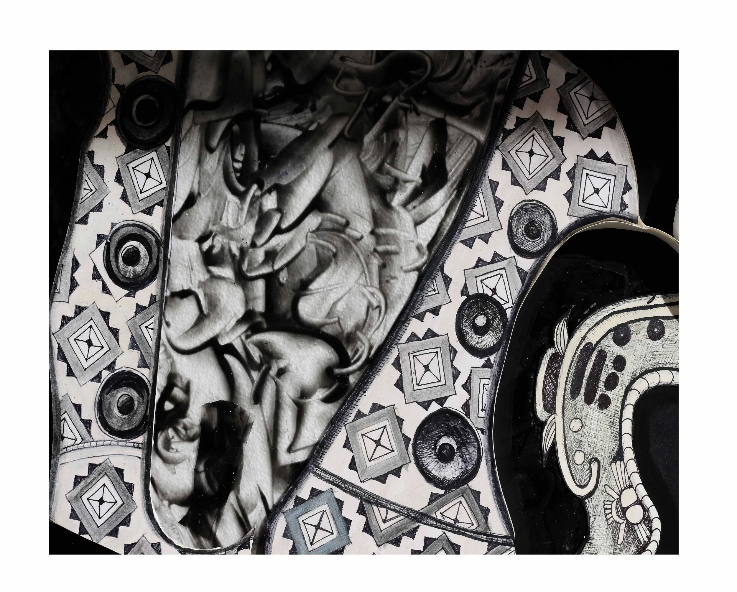 Mixed- media art made with paper, foam, carbon acuarela. size 30×36 cm